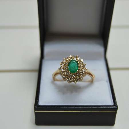 18ct Gold Vintage Emerald & Diamond Cluster Ring