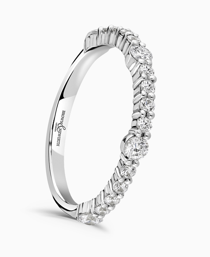 Handcrafted by Brown & Newirth; graduated round brilliant diamonds totalling 0.38ct sit across the top of the hoop. Part of the Vintage Collection. Total carat weight 0.38ct