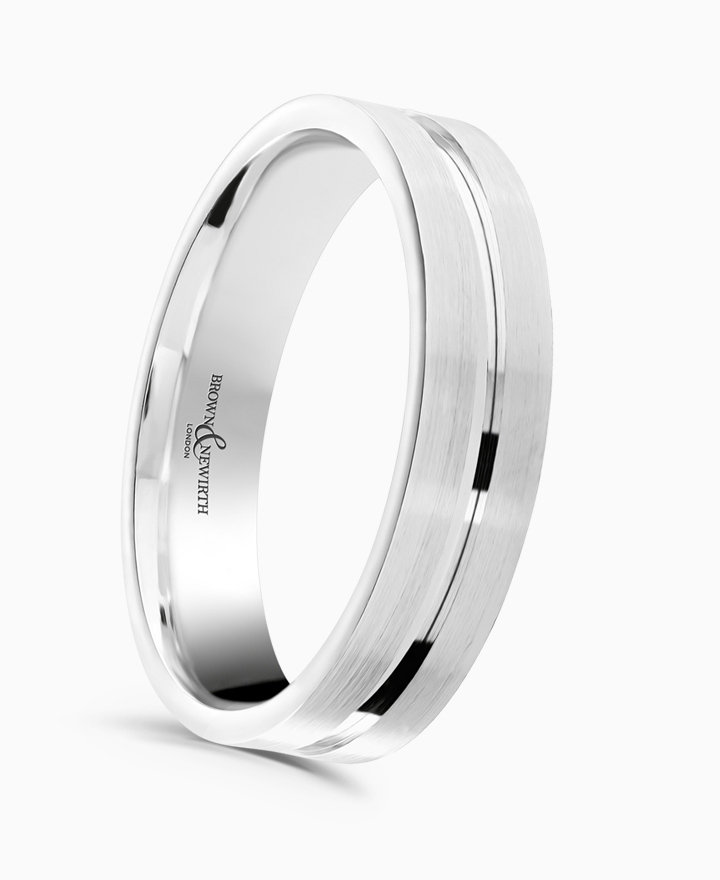 Handcrafted by Brown & Newirth; our flat top profile in brushed finish with contrasting polished channel detail, presented in a light gauge.