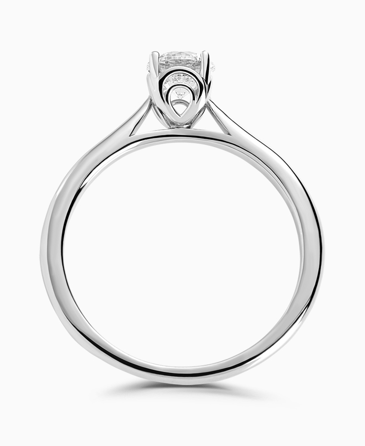 Handcrafted by Brown & Newirth; a delicate four claw setting with floral detailing perfectly elevates the round brilliant cut diamond, presented here on a classic court band. 0.50ct
