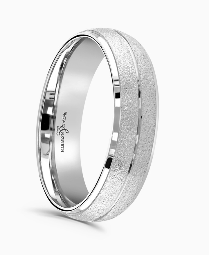 Handcrafted by Brown & Newirth; our classic court profile with matte top and contrasting polished centre line and bevelled edges, presented in a medium gauge.