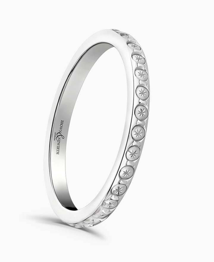 Handcrafted by Brown & Newirth; our flat sided 'D' shape profile is adorned with diamond cut detailing, presented in a heavy gauge. Part of the Icon Collection.