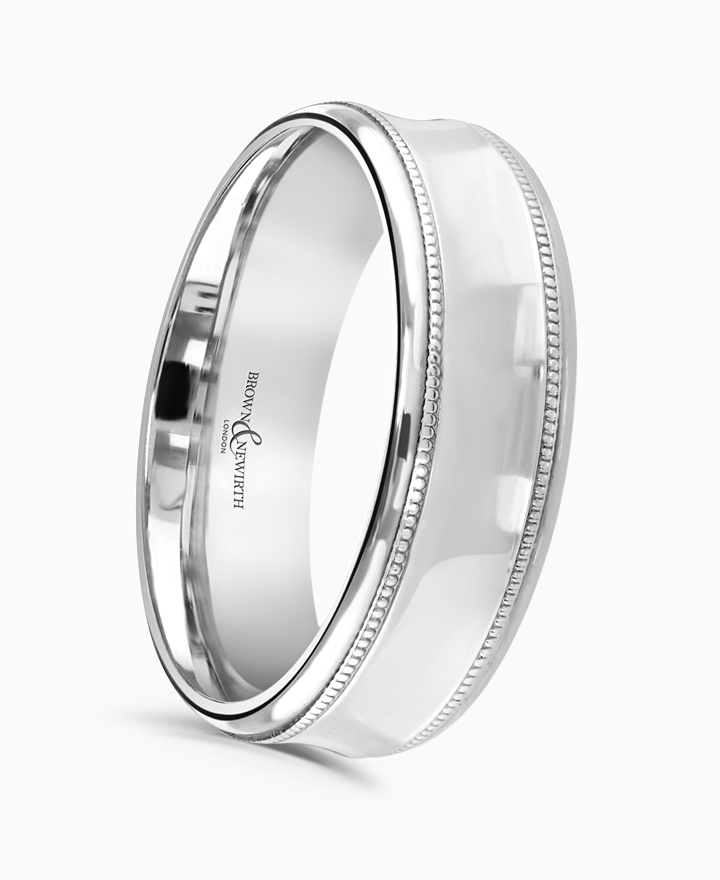 Handcrafted by Brown & Newirth; our flat top profile with beaded detailing and dropped rolled edges, presented in a heavy gauge.