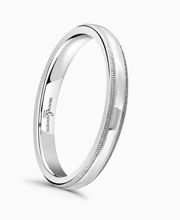 Handcrafted by Brown & Newirth; our classic court profile with mill grain edge detail, presented in a medium gauge.