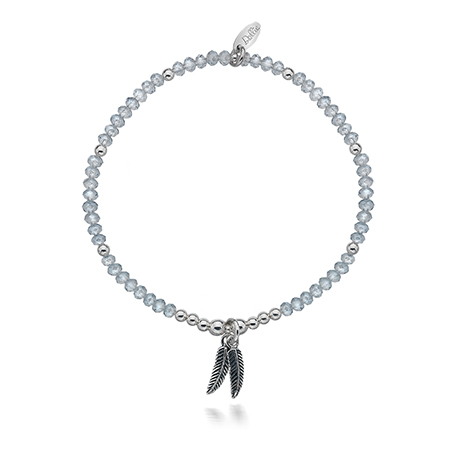 The palest of twinkling grey crystal beads really get your shimmer on, combined with sterling silver bead accents and dinky double feather charm to tickle your fancy!