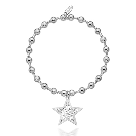 Sterling silver beads and crystals on a stretchy silicone thread.