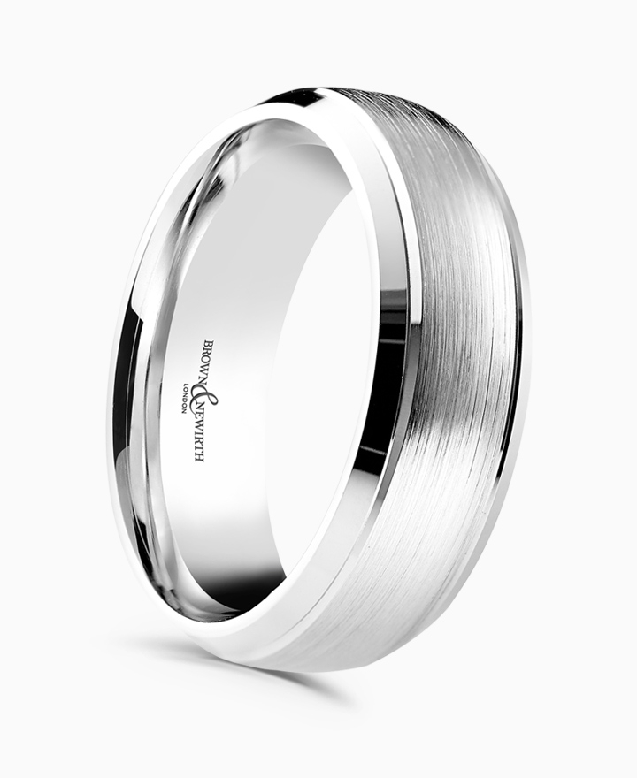 Handcrafted by Brown & Newirth; our classic court profile elevated by a brushed top and contrasting polished bevelled edges, presented in a medium gauge. Part of the Icon Collection