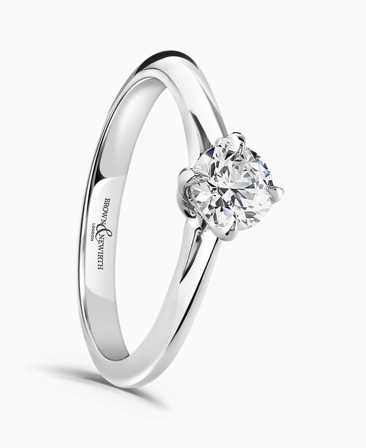 Handcrafted by Brown & Newirth; inspired by nature, organic lines twist up to embrace a round brilliant cut diamond, presented here on a classic court band. 1.00ct. Part of the Entwined Collection.