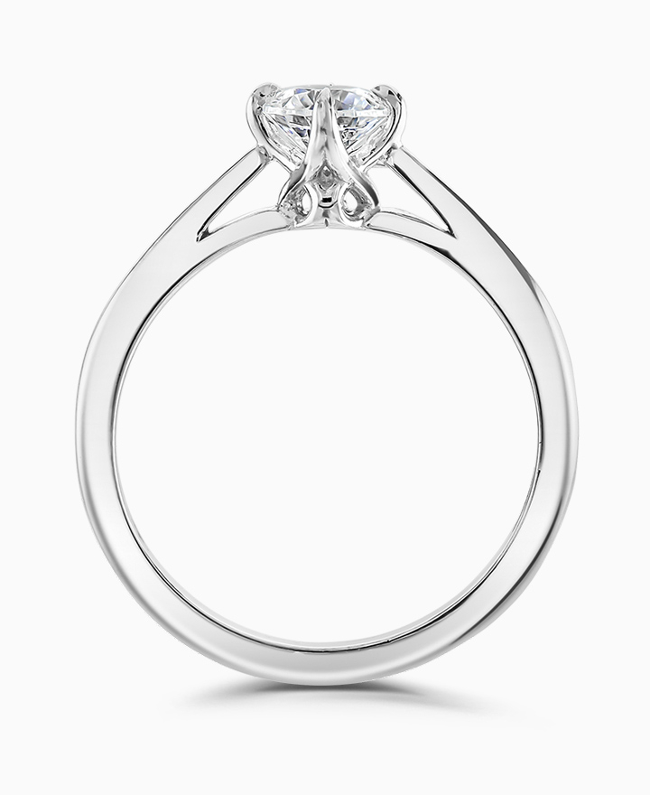 Handcrafted by Brown & Newirth; inspired by nature, organic lines twist up to embrace a round brilliant cut diamond, presented here on a classic court band. 0.50ct. Part of the Entwined Collection.