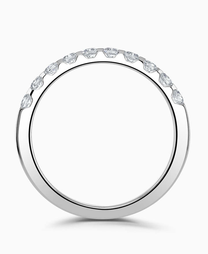 Handcrafted by Brown and Newirth; round brilliant cut diamonds adorn 40% of this square edged band. Total carat weight 0.25ct
