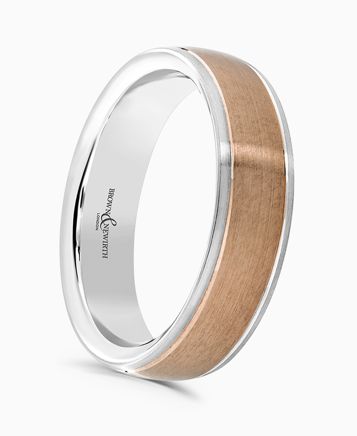 Handcrafted by Brown & Newirth; our modern court profile in brushed finish with contrasting colour edges and polished interior bevels, presented in a heavy gauge. Part of the Icon Collection.