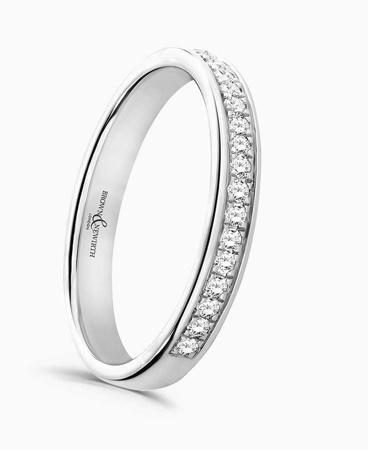 Handcrafted by Brown & Newirth; round brilliant cut diamonds adorn 40% of this classic court band. Total carat weight 0.15ct
