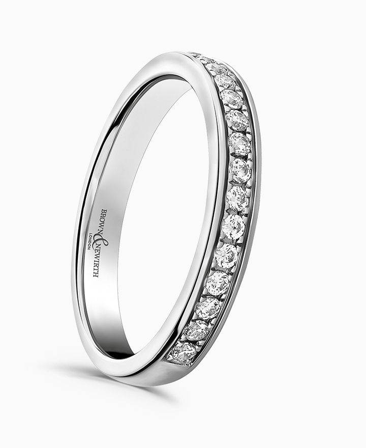 Handcrafted by Brown & Newirth; round brilliant cut diamonds adorn 40% of this classic court band. Total carat weight 0.20ct