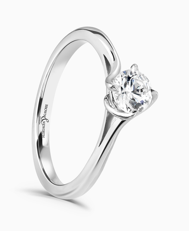 Handcrafted by Brown & Newirth; inspired by nature, organic lines twist up to embrace a round brilliant cut diamond, presented here on a classic court band. 1.00ct. Part of the Entwined Collection.