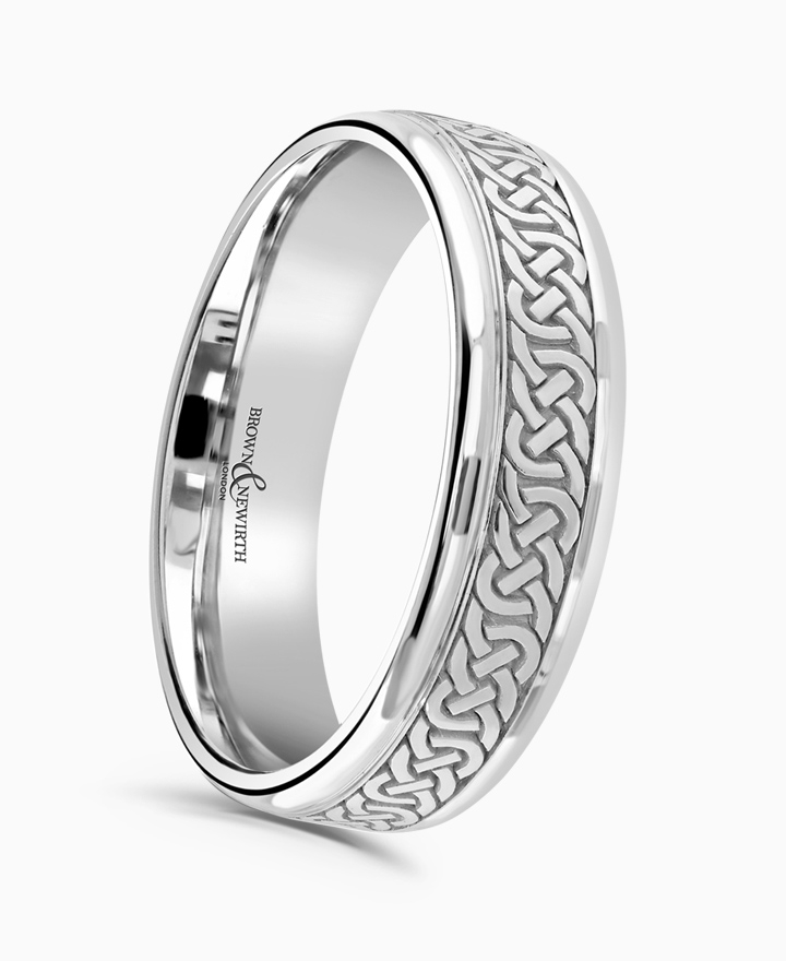 Handcrafted by Brown & Newirth; our classic celtic design on a flat profile with dropped rolled edges, presented in a light gauge.