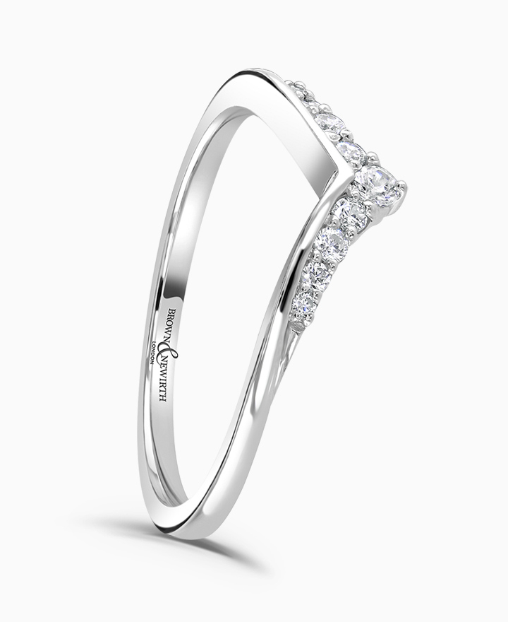 Handcrafted by Brown & Newirth; a wishbone tiara style design with open set round brilliant diamonds on a classic court band. Part of the Lace Collection. Total carat weight 0.12ct