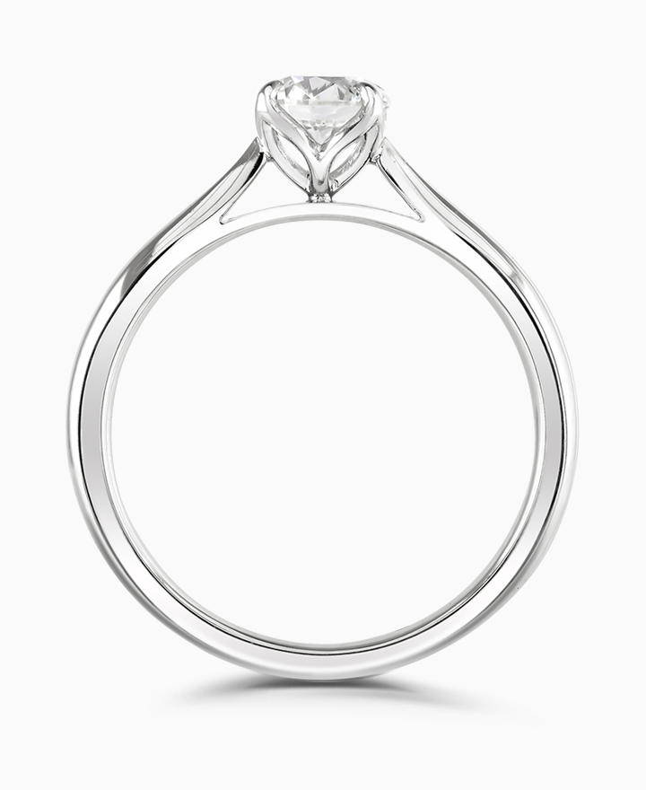Handcrafted by Brown & Newirth; our signature 'bloom' floral detailing for a round brilliant cut F Si diamond, presented here on a classic court band. 0.70ct. Part of the Bloom Collection.