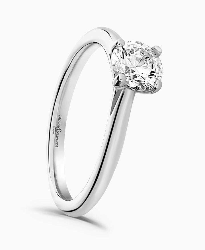 Handcrafted by Brown & Newirth; a delicate four claw setting perfectly elevates the round brilliant cut diamond, presented here on a classic court band. 0.75ct