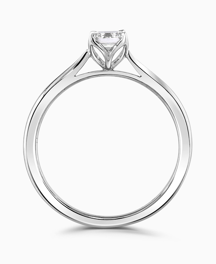 Handcrafted by Brown & Newirth; our signature 'bloom' floral detailing for a cushion cut diamond, presented here on a classic court band. 0.30ct. From our Bloom Collection. Part of our in stock range, order today for quick delivery.