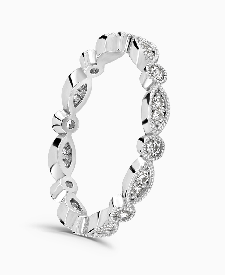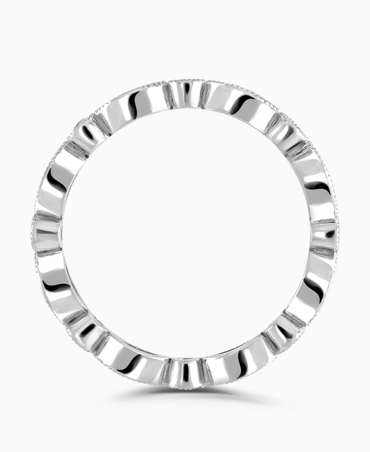 Handcrafted by Brown & Newirth; round brilliant diamonds are set in alternate round and petal shapes with mill grain detailing. Part of the Vintage Collection. Total carat weight 0.27ct