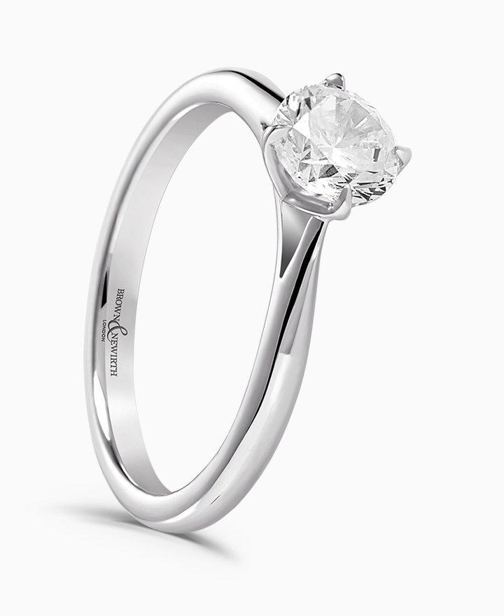 Handcrafted by Brown & Newirth; our signature 'bloom' floral detailing for a round brilliant cut G Vs diamond, presented here on a classic court band. Part of the Bloom Collection. 1.00ct