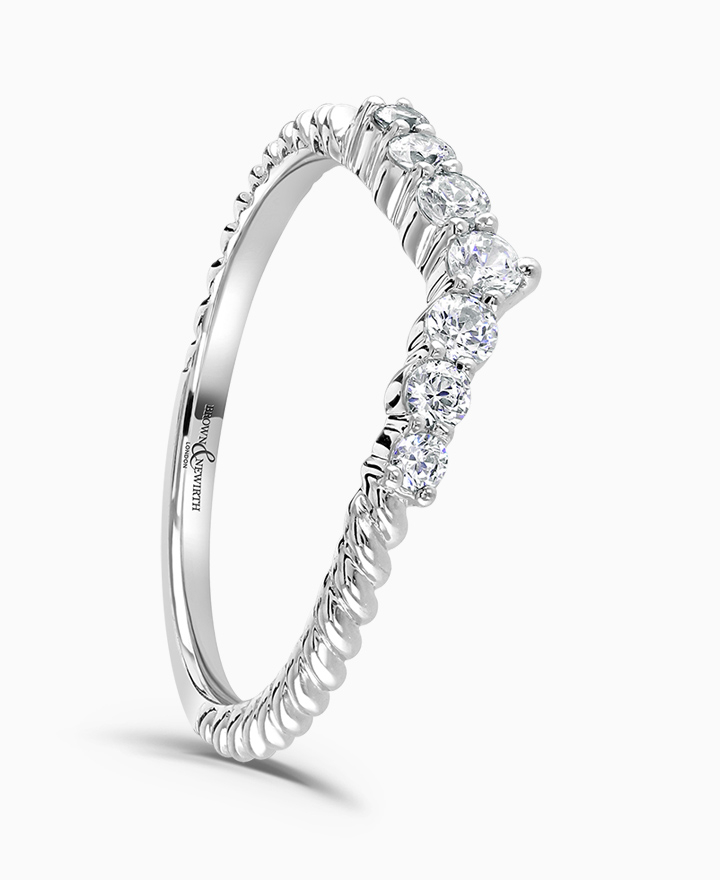 Handcrafted by Brown & Newirth; a wishbone tiara style design with twist design and open set round brilliant diamonds on a classic court band. Part of the Lace Collection. Total carat weight 0.25ct