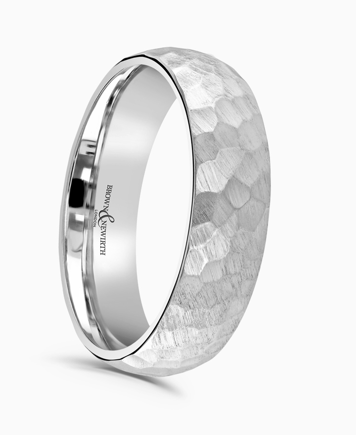 Handcrafted by Brown & Newirth; our classic court profile finished with a brushed hammer effect, presented in a heavy gauge.