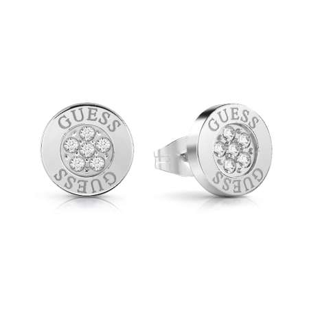 This set of silver GUESS coin studs feature an embossed GUESS logo and crystal centre.