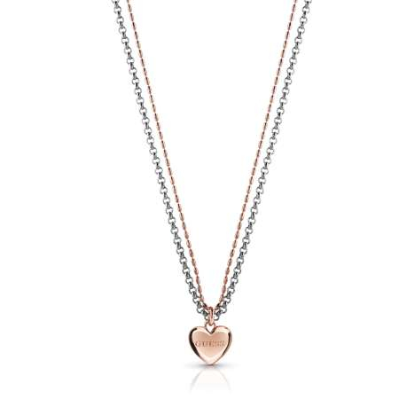 This double GUESS necklace has a thinner Rose gold and silver chain featuring a Rose Gold guess charm in the centre.