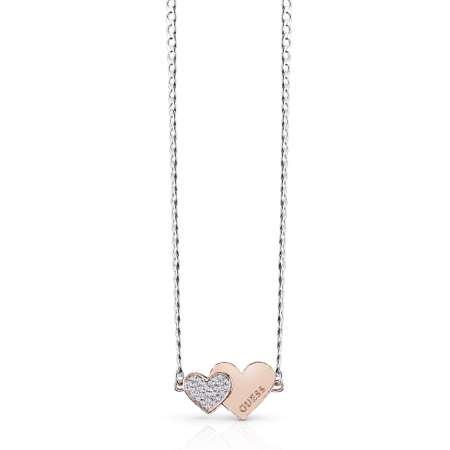 Rhodium 16-18" Big chain with rose gold double heart pendant.
