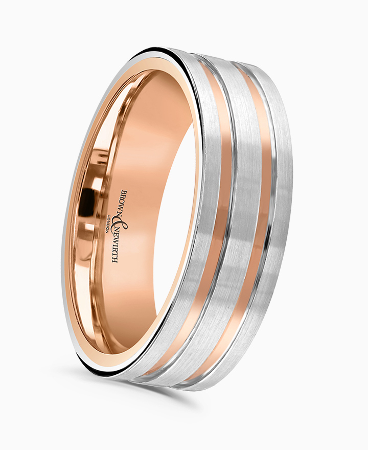 Handcrafted by Brown & Newirth; our flat top profile with two channel cuts exposing contrasting colour inner, presented in a heavy gauge.