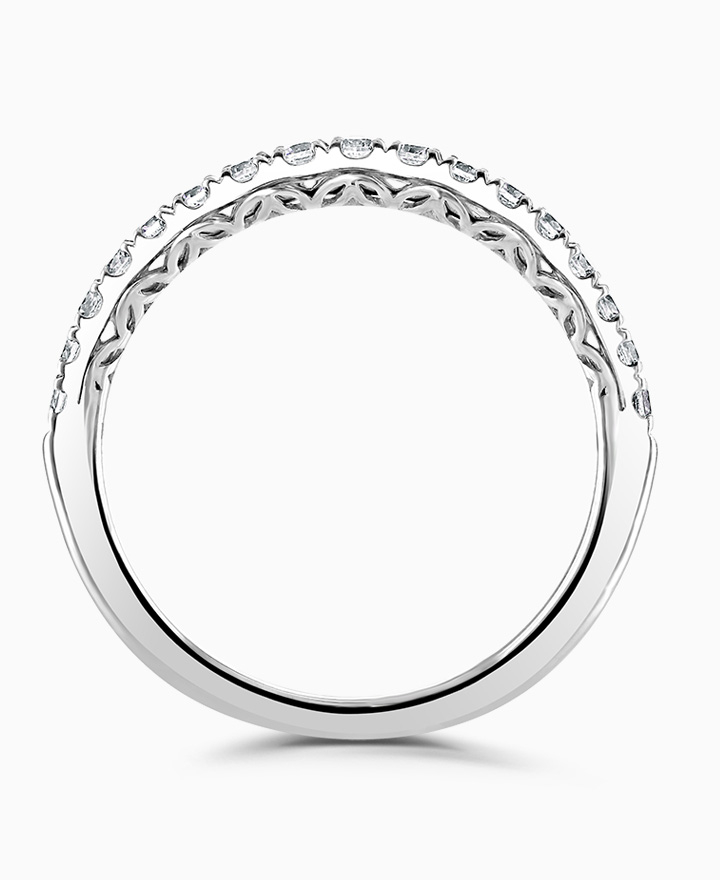 Handcrafted by Brown & Newirth; round brilliant diamonds, claw set with lace detailing adorn 50% of this classic design. Total carat weight 0.34ct. Part of the Lace Collection